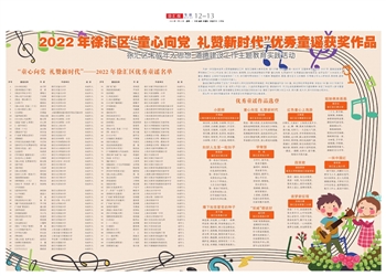 为进一步加强未成年人思想道德建设工作,落实立德树人根本任务,深入开展“扣好人生第一粒扣子”主题教育实践活动,2022年,围绕迎接宣传贯彻党的二十大工作主线,徐汇区文明办、教育局、文化和旅游局组织开展“童心向党 礼赞新时代”优秀童谣征集传唱活动,动员全区广大未成年人写童谣、唱童谣,以实际行动迎接党的二十大、学习宣传贯彻党的二十大精神,厚植爱党、爱国、爱社会主义的情感,引导青少年从小听党话、感党恩、跟党走,培养担当民族复兴大任的时代新人。
