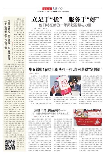 曹立强说,画好“施工图”,将党的二十大精神、总书记考察上海的重要讲话重要指示精神、市第十二次党代会精神和市委对徐汇的功能定位作为一切工作的根本遵循。要对标开题,明确主攻方向和主要任务。要创新破题,以更大力度解放思想,尊重部门专业、尊重街镇实际、尊重群众意愿,统筹解决好各类具体问题。紧盯“进度表”,要早谋划,对标“建设新徐汇、再造新徐汇”2.0版的20项工作计划和57个具体指标,深入研究做好工作安排。备足“原料仓”,要把握今年的规律特点,增强工作前瞻性,以自身工作的确定性对冲外部环境的不确定性。当好“调度员”,加强工种之间、条块之间协同作战,提高统筹谋划、协调推进能力,掌握“能动不等、能并不串、能容不限”原则,通过协同联动、并联审批、简化手续、优化流程,全力破解工程建设、企业服务等方面裉节难题。锤炼“铁脚板”,领导干部带头当好“马路干部”“一线干部”,加大走访力度,解决实际问题。