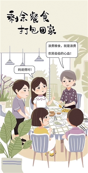 为了在全社会广泛宣传爱粮节粮的文明风尚,徐汇区利用好公益广告这一宣传文明新风的重要载体,积极创作有特色、有温度、接地气的原创公益广告。《“厉行节约 浪费可耻”公益广告》以组图的形式,展现家庭、餐厅、校园等就餐场景,提醒人们不过度点餐,吃不完可打包,帮助孩子养成“光盘”的好习惯等等,画面背景中融入了徐汇元素,展现徐汇的特色和亮点。