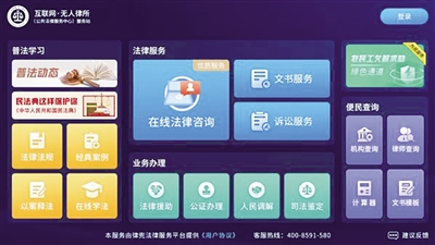 小莉是华泾龙湖天街商场的营业员,按图所骥,找到了司法所设在天街附近的“互联网无人律所”寻求法律咨询。小莉打开无人律所的门后,按照屏幕的操作提示选择了需要咨询的事项,不到一分钟系统就匹配律师为她提供了远程视频咨询,解答了她的疑惑。