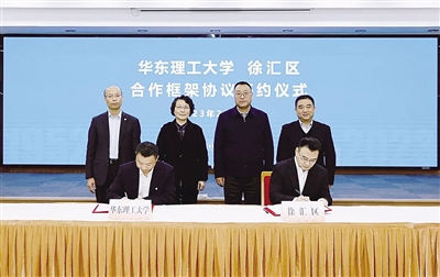 本报讯 2月28日下午,华东理工大学与徐汇区合作框架协议签约仪式举行。区委书记曹立强、华东理工大学党委书记杜慧芳出席并讲话。区委副书记、区长钟晓咏,华东理工大学党委副书记、校长轩福贞,党委常委、副校长李涛参加。仪式上,副区长王志华,华东理工大学党委常委、副校长李剑分别代表徐汇区、华东理工大学签署合作框架协议。