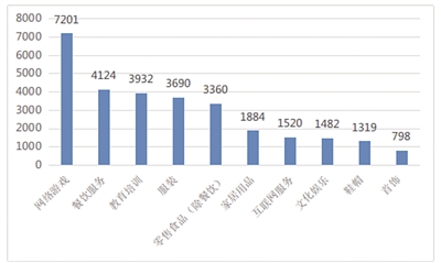 1. 从投诉客体来看,排名前五位的投诉依次为网络游戏服务7201件、餐饮服务4124件、教育培训服务3932件、服装类3690件、零售食品类(除餐饮服务)3360件,上述五类占投诉总量的47%。
