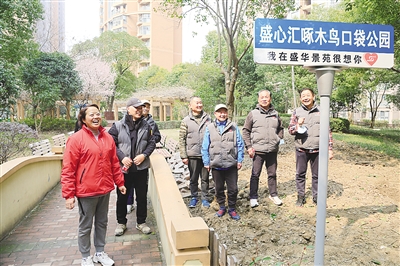 盛华景苑业委会沈主任介绍说,口袋公园是面向公众开放、规模较小、形状多样、具有一定游憩功能的小微绿地,是通过见缝插针式布局来打造社区生活的城市微空间。这个口袋公园由小区业委会筹资修建,居民自行设计,还有热心居民赞助,将来也会由啄木鸟队自行管理,他们打算把这里好好翻新一下,铺上地砖,种上花草,等到春暖花开,这里将成为各个年龄段的居民都可以休闲娱乐的好去处。