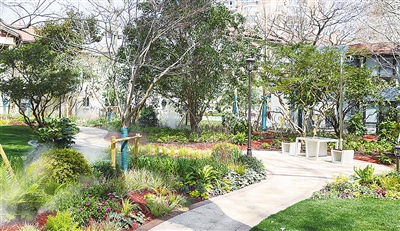为进一步践行“人民城市”理念,徐汇区绿化市容局与体科所经过多次沟通,精心规划设计,通过“拆墙透绿”让“丽波花园”内的“私家花园”变身为了市民游客可以步入的口袋公园。口袋公园以“丽波·水漾”为名,3月10日完成施工正式与市民游客见面。经过改造提升后的“丽波·水漾”不仅融入了周边街区的氛围,还可以让市民游客与“丽波花园”近距离接触,在街角就能实现同框的愿望。