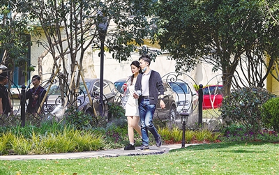 双坡红瓦屋面,白水泥拉毛墙面,凹凸状立体感的现代式建筑风格,这一栋由法商赉安洋行设计的“丽波花园”透露着浓浓的法式风情。趁着天气正好,不少市民步入公园,举起手机收录美好。阳光下的草坪、复古的欧式喷泉、曲折蜿蜒的小径、如梦如幻的雾森,还有那别具趣味的铁艺栏杆,与“丽波花园”相得益彰,随手拍下就是一张典雅的明信片。