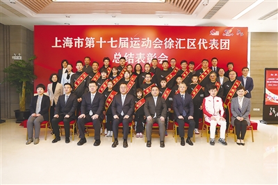 3月10日上午,上海市第十七届运动会徐汇区代表团总结表彰大会举行。会前,区委书记曹立强,区委副书记、区长钟晓咏,区委副书记沈权,区委常委、宣传部长赵懿,副区长王志华等亲切接见了优秀运动员代表、四届蹦床世锦赛冠军高磊及在市运会中成绩突出的先进单位、教练员、运动员代表,向他们表示热烈的祝贺并合影留念。