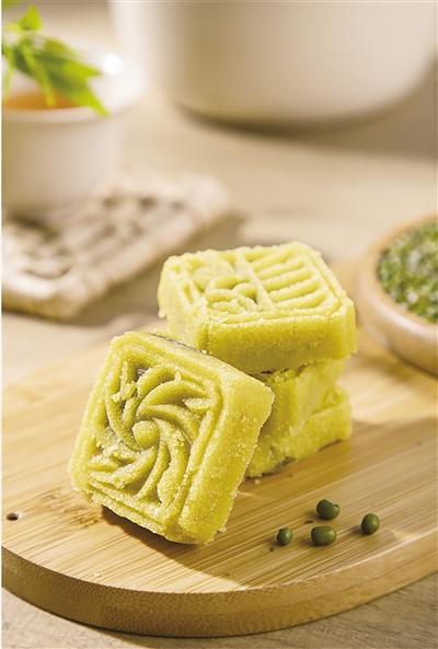 绿豆糕采用百年传统手艺,经过脱、磨、筛、搓、揉、合、压、蒸等多道工序还原醇正本味,细腻松软,沙沙滑滑,入口即化,一方小小的绿豆糕,拾回记忆中的味道。
