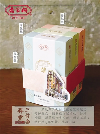 “弄堂三件套”集结了三款颇具儿时记忆的江南地区传统糕点,绝对是爷爷妈妈辈的“网红”糕点。独立包装、开袋即食,每一盒中有三小包独立包装,便于分享,避免出现吃不完难以储存从而导致变味的情况,系列礼盒包装很适合作为伴手礼送给亲朋好友。