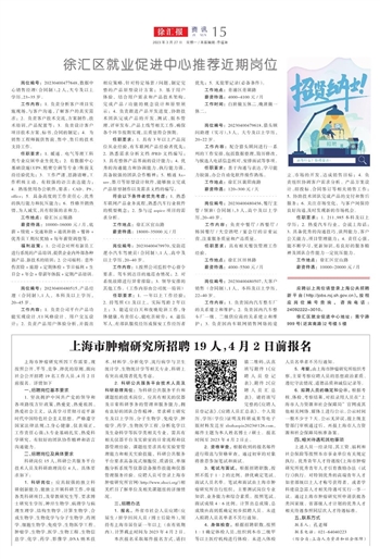 上海市肿瘤研究所因工作需要,现按照公开、平等、竞争、择优的原则,面向社会公开招聘19名工作人员,4月2日前报名。详情如下