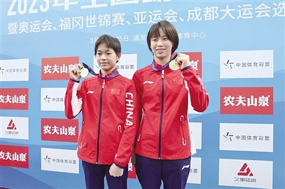 3月19日至3月25日,2023年全国跳水冠军赛在浦发银行东方体育中心室内游泳馆举行。3月19日上午,大赛拉开序幕,女子双人10米跳台决赛中,世界冠军组合全红婵和陈芋汐(徐汇小囡)拿下冠军,勇夺本届赛事的首金(如图)。