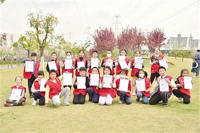 “拾起一片樱花瓣看看是什么样子的?”“一场樱花雨又该有何种美丽?”本次“小记者团”的任务命题是寻找“春天的花”。“小记者们”用画笔记录着春之百态,一幅幅生机勃勃的景象跃然于纸上,引得路人频频驻足观看。