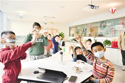 手工“车间”里,孩子们在老师的指导下认真地观察、拼接、安装、打磨、检验、再修正……尽情“脑洞大开式”地提问,老师们无限延伸着知识点,在这里实现真正的“玩、学”兼顾!