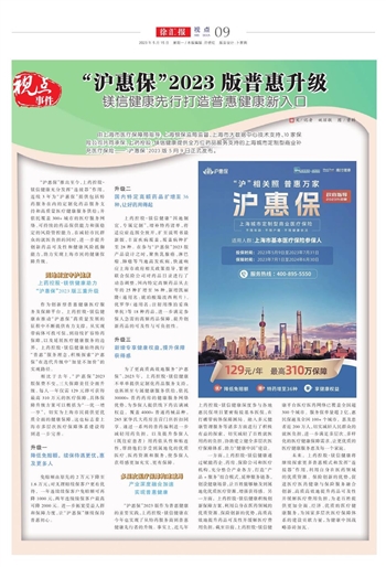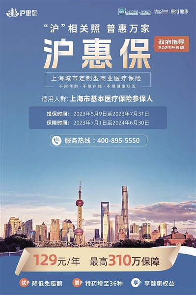 由上海市医疗保障局指导、上海银保监局监督、上海市大数据中心技术支持、10家保险公司共同承保、上药控股·镁信健康提供全方位药品服务支持的上海城市定制型商业补充医疗保险——“沪惠保”2023版5月9日正式发布。