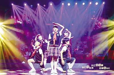 少先队员代表们分别以情景剧、音诗画、微视频等形式展现了徐汇少先队五年工作的历程与成效。