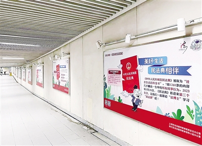 正值“民法典宣传月”,近日,上海地铁1号线漕宝路站1号出口的“地铁法治文化长廊”内容已上新。