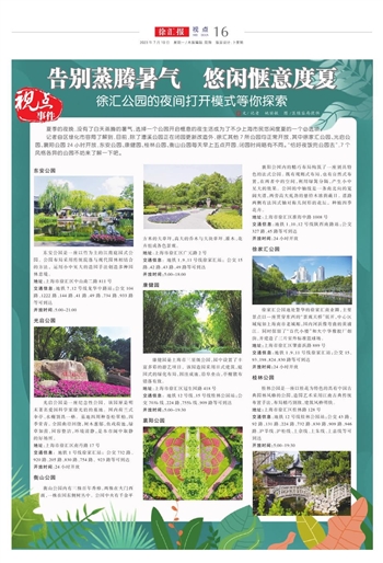 记者自区绿化市容局了解到,目前,除了漕溪公园正在闭园更新改造外,徐汇其他7所公园均正常开放,其中徐家汇公园、光启公园、襄阳公园24小时开放,东安公园、康健园、桂林公园、衡山公园每天早上五点开园,闭园时间略有不同。“恰好夜饭兜公园去”,7个风格各异的公园不妨来了解一下吧。