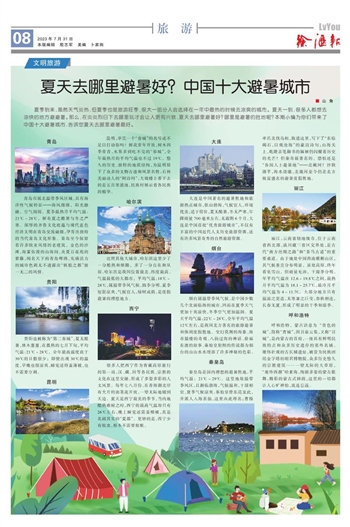 夏季到来,虽然天气炎热,但夏季也是旅游旺季,很大一部分人会选择在一年中最热的时候去凉爽的城市。夏天一到,很多人都想去凉快的地方避避暑。那么,在炎炎烈日下去哪里玩才会让人更有兴致,夏天去哪里避暑好?哪里是避暑的胜地呢?本期小编为你们带来了中国十大避暑城市,告诉您夏天去哪里避暑最好。