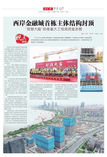 西岸金融城首栋主体结构封顶