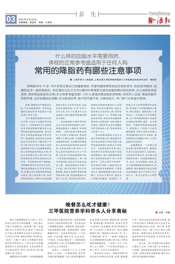 常用的降血脂药大致分为他汀类和非他汀类,降血脂的首要目标是依据不同的风险分级将低密度脂蛋白控制在合理的水平。大量临床研究表明,他汀类药物可显著降低血液中的低密度脂蛋白,减少动脉粥样硬化性心血管疾病患病率、死亡率和脑卒中、急性心梗等不良事件,是首选治疗药物。其副作用主要为肝功能异常和肌损伤,与剂量成正比,服用剂量越大副反应也越大,且存在个体差异,建议从小剂量开始服用。洛伐他汀、辛伐他汀等与食物同服更容易吸收,普伐他汀与食物同服减少吸收,阿托伐他汀、瑞舒伐他汀、氟伐他汀、匹伐他汀不受食物影响。由于肝内胆固醇的合成通常在夜间达到高峰,建议一些半衰期短、代谢快的药物如氟伐他汀、洛伐他汀、辛伐他汀应选择晚间服用,其他半衰期长的他汀类药物服用时间可不受限制。服药期间应定期随访复查,尤其是血脂尚未达标时。