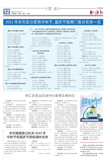 2023年本市部分医院中秋节、国庆节假期门急诊安排一览