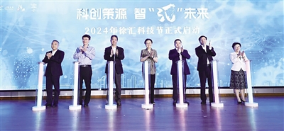 5月23日,以“科创策源 智‘汇’未来”为主题的2024年徐汇科技节开幕式,在中国科学院上海分院举行。中国科学院院士王恩多,市科技工作党委副书记王宇,市科协党组成员、二级巡视员刘伟,区委常委、副区长俞林伟,中国科学院上海分院副院长高召兵,区人大常委会副主任朱伟红,区政协副主席施斌等领导和嘉宾出席,共同启动本届科技节(如右上图)。