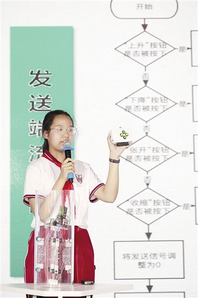 徐汇中学的窦一帆不仅是徐汇区的“光启区长奖”获得者,还在去年获得了上海市“明日科技之星”的荣誉,并入选市青少年科学研究院的“小研究员”。作为一个充满好奇心的少年,她对新兴事物总是充满热情。她的科创作品《基于膨胀钉原理的一种自适应深井救援装置》,灵感来源于消防队员救援落井儿童的新闻报道。几年前,窦一帆看到一则深井救援失败的新闻,为小男孩的逝去而惋惜,于是开始思索有没有更好的解决办法。家中装修时,她第一次见到“膨胀钉”并受到启发,据其原理设计出一种“自适应深井救援装置”。在整个研究过程中,她经历了查阅文献、硬件选择、软件编程、模型制作、装置调试、数据分析等过程,还对救援装置进行了三次迭代改进,期待这项成果能真正用于实际生活,救助更多生命。此外,窦一帆在计算机编程方面也颇有建树,从Scratch到Python再到C++,她都乐在其中,并在多个国家级赛事中获奖。