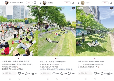徐汇又有一处绿地火了!日前,在社交软件上,不少网友发帖,称徐汇滨江的阶梯草坡是“打工人的午睡宝地”,并附上美照。