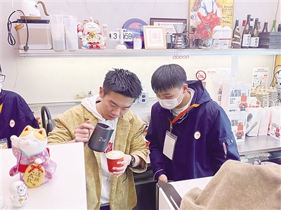 小店20来平方米,南北通透,墙上的各式活动海报十分抢眼,有与知调联名举办的“咖啡·闻香”活动,与Women女子骑行合作举办的“咖啡骑行”活动,和Clawqallery举办的送你一张宠物全家福活动,还有与社区街道合作为高中生举办“一日咖啡师”活动……这些活动,让咖啡小店从早到晚都人气兴旺。陈店长说,后面会举办夜间读书会,顾客下班后可以在店内选择早已准备好的饮品,在店里看书休息,放松一天的工作压力,最后可自己关灯、锁门,把这里当作是你的“客厅”。