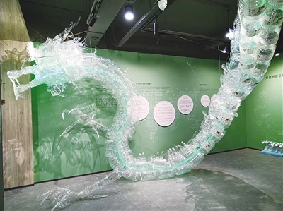 据了解,整个“汇龙艺塑”从龙头到龙尾,每一个部分都展现了环保材料的巧妙运用。1168片裁剪的塑料瓶片组成了龙头和龙鳞;442个废弃塑料桶嵌合构成了龙身;废弃的塑料水管和酸奶瓶则被创新地用来制作龙骨与龙爪;而扇形的龙尾设计,则与馆内“可回收自助交投区”的六类回收物相呼应,暗喻着回收物品的循环利用。这一切,无不体现了变废为宝的智慧。