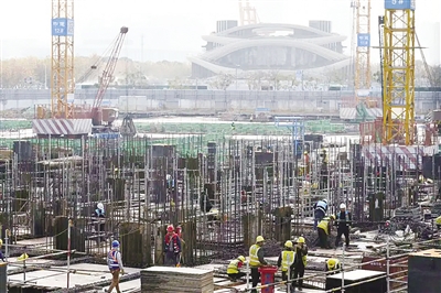 施工当天,正值冬至时节,中建八局徐汇滨江金融城D地块项目劳务生产经理吴钦告诉记者:“我们都想抓紧干好项目,今天是冬至,公司特意准备了饺子和点心,等完工后,大家团聚过个节。”近期,虽然气温不断下降,给室外劳作增加了难度,但工地上工人们却干得热火朝天,现场指挥调度,机器的马达声轰隆隆,搅拌车来来往往,工人们紧盯着浇筑进展,一派红红火火……