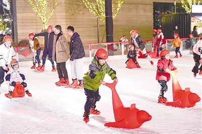 梦中心与乐滑之梦联手打造的上海最大户外水岸冰场,成为本次嘉年华的一大亮点。这座冰场面朝黄浦江,拥有超千平方米的广阔空间,吸引了众多消费者前来体验冰雪乐趣。来自东北的孙女士特意带着孩子前来感受:“在上海还是第一次玩滑冰,这里还有人造雪,挺好玩的。”小朋友意犹未尽,兴奋地和记者分享:“我推着小海豹在滑,虽然我不会,但是很好玩!”