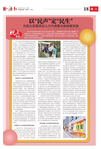 2024年8月,华泾镇北杨华发片区组织开展2025年为民办实事项目集中征集,镇人大代表、社区居民、相关部门工作人员参与其中,现场各抒己见,提出了不少金点子,工作人员一一记录下来。“在居民区现场召开听取民主管理建议的会议,不仅把人民民主管理的理念传递到基层,还让各项工作能高效落实,让票决制在社区获得进一步拓展。”镇人大代表顾成功表示。