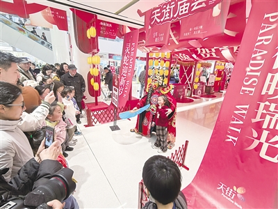 龙湖天街主办方介绍,每年辞旧迎新都有“大手笔”,也是种传统,通过喜庆氛围营造和活动体验,让消费者走进商场,爱上各类商品,从而拉动消费,更是通过这些传统戏法和非遗体验,让大人和孩子们共同享受过年的“味道”。