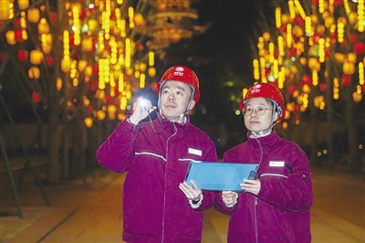 “薛工,现场的负荷已经下来了,我们先收工回站里,后续有需要随时给我们打电话。”大年初一凌晨2点,伴随着活动现场人潮褪去,徐汇区龙华寺迎新春祈福活动现场保电工作顺利结束,市南公司南丹供服中心客户工程师洪婉舒与营销部客户经理岳克随开始整理工器具收队,这也是市南公司供电服务指挥中心打响的春节保电“第一仗”。