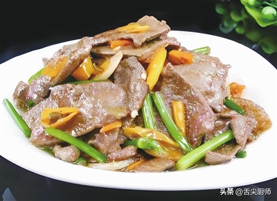 5.炒猪肝:锅中加入适量食用油,烧热后放入姜片和蒜末爆香。然后放入腌制好的猪肝,用中火翻炒至猪肝变色,炒至猪肝熟透后,盛出备用。