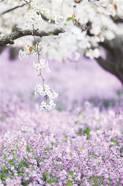 在江苏这座宝藏小城里也可以找到春日超赞美景,三台山的“梨花会”,藏着宿迁春天里独有的诗情画意。每年的3月底至4月初,三台山公园里的500亩梨花与上万株二月兰同时盛开,圣洁的白色和温柔的紫色组合在一起,真的超有梦幻感,超浪漫。