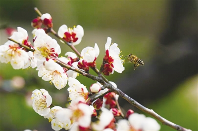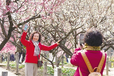 早春时节,梅花迎春。上海植物园的梅花在寒风中已缓缓盛开,吸引不少市民前去赏花。 朱亮 摄影报道
