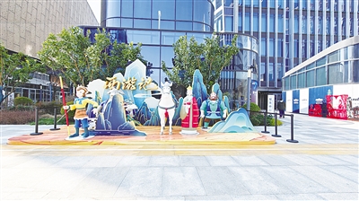 近日,《西游记》人物景观植入西岸传媒港内,令过路行人欣喜不已。《西游记》故事告诉人们,团队成员之间需要相互理解、包容和支持,才能形成强大的合力,实现共同的目标。 倪修龙 摄影报道