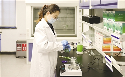 “我们对采购来的蔬菜先进行剪制,把它分成小块,这样能更好地跟反应试剂进行反应。然后我们把它放进试管中,滴入农残的提取液,进行初步反应。后续我们进行进一步的检测,将反应完毕的提取液滴入到检测的试剂卡上,等待结果。”快检室工作人员告诉记者,演示中检测的是蔬菜上腐霉利的残留情况,腐霉利作为内吸性杀菌剂,有着较好的杀菌作用,但有不法分子利用其良好的杀菌作用,在种植中超剂量使用,严重危害消费者的健康。