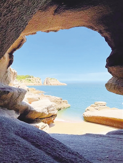 这里有湛蓝的大海,金色细腻的沙滩,无拘的海浪,还有绝顶仙境蓬莱阁。