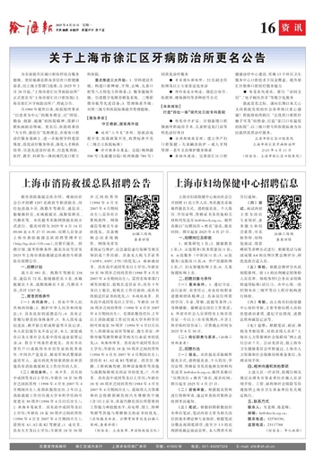 为全面提升区域口腔医疗综合服务能级,更好地满足群众多层次口腔健康需求,经上级主管部门批准,自2025年2月28日起,“上海市徐汇区牙病防治所”正式更名为“上海市徐汇区口腔医院(上海市徐汇区牙病防治所)”,特此公告。