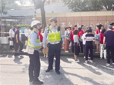 在康健外国语实验中学考点外,康健街道“护考天团”高效联动:公安维护交通秩序,城管整治环境乱象,市容联勤维护整洁,志愿者提供引导等暖心服务,街道相关部门保障措施落实,为学子们的梦想之路保驾护航。