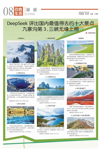 DeepSeek评出国内最值得去的十大景点 九寨沟第3,三峡无缘上榜