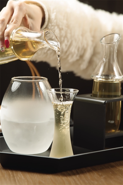 茶器也别具特色。夏天天气热,你可以来一壶沁心爽口的“冰”茶,冰茶的容器是晶莹剔透的水滴壶。这种5T特制的双层玻璃茶壶,内层盛放茶汤,外层的套壶则放冰块冰水,茶壶始终放在冰水中,不仅可以一直保持茶水的冰凉口感,还能让喝进嘴里的茶始终保持同样的滋味。