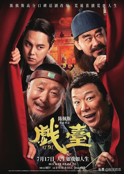 七旬高龄陈佩斯此次携子上《戏台》,充分发挥了喜剧演员精湛的表演技巧,作为五庆班班主的侯喜亭,因为有京剧名角金啸天(尹正 饰)压台,使戏票早早被哄抢一空,而洪大帅(姜武 饰)是“生旦净末丑”都分不清的戏盲,带着部下一脚踹开戏院,逼着退票,促演“开国大戏”,将误打误撞送包子的老乡“大嗓儿”(黄渤 饰)视为知己,让他演楚霸王,使包子一下子成了“名角”,更荒诞离奇的是,当戏中楚霸王拔剑自刎时,洪大师大拍桌子大发雷霆,鸣枪示威,大喊:“谁让他死的?楚霸王不能死,必须让刘邦上吊!改戏!”